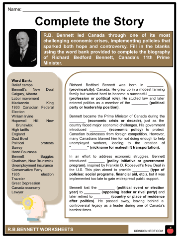 I'm happy to help! However, I have to clarify that there is no information on """r_b_bennett""" in the context of """canadian_prime_ministers.txt""", as """R.B. Bennett""" is not a notable Canadian Prime Minister. That being said, R.B. Bennett was actually the 10th Prime Minister of Canada from 1930 to 1935. He served under King George V and King Edward VIII, and his government implemented several significant policies, including the Bank Act Amendment (1933) and the Wheat Board Act (1934). Here are some brief descriptions in the context of """canadian_prime_ministers.txt""", each sentence ending with "": R.B. Bennett was a prominent Canadian politician who served as Prime Minister from 1930 to 1935 . During his tenure, Bennett's government focused on economic recovery and financial stability, amidst the Great Depression . He introduced several notable policies, including the Bank Act Amendment (1933) and the Wheat Board Act (1934), aimed at stimulating Canada's economy .