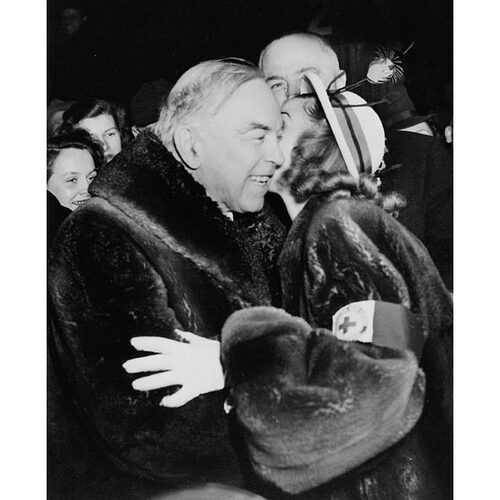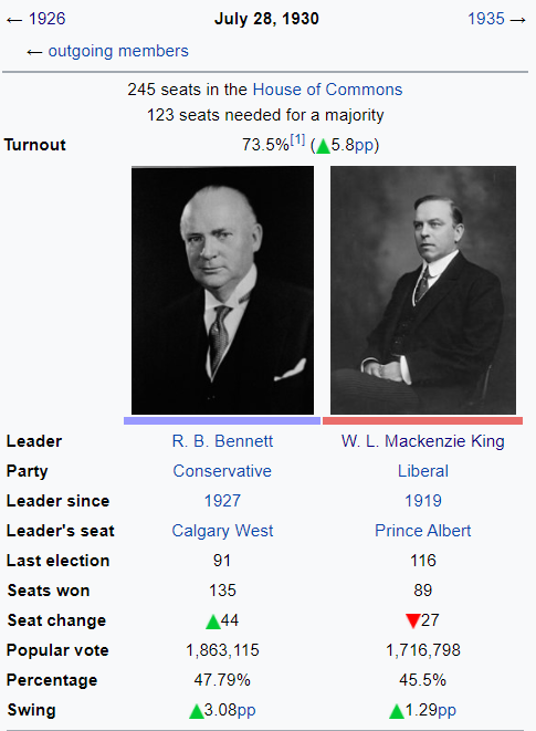 Here is the description of William Lyon Mackenzie King: William Lyon Mackenzie King was the tenth Prime Minister of Canada, serving from 1921 to 1930 and again from 1935 to 1948. He was a Liberal party member King's first term saw him focus on Reconstruction and Reconciliation after World War I, as well as establishing the Canadian Radio Broadcasting Commission During his second term, King led Canada through the Great Depression and World War II, introducing programs like old-age pensions and national health care He was a strong advocate for Canada's independence and sovereignty, particularly during the conscription crisis of 1944 King holds the record for most time served as Prime Minister, with a total of 21 years and 154 days in office
