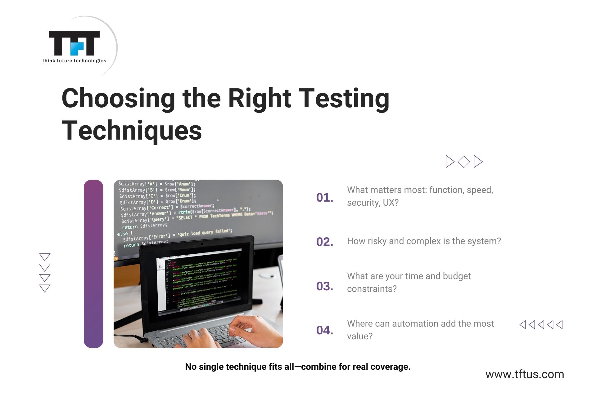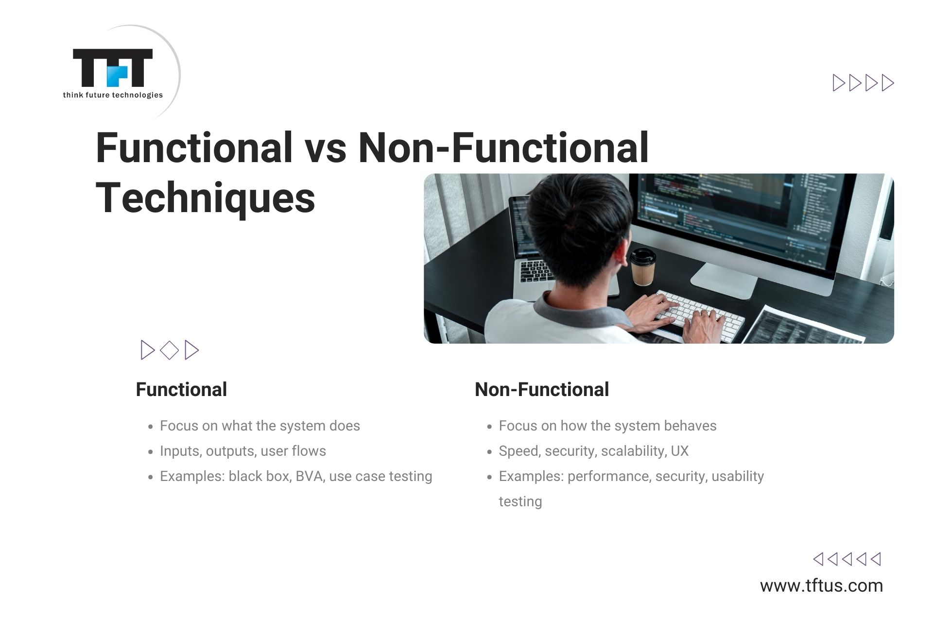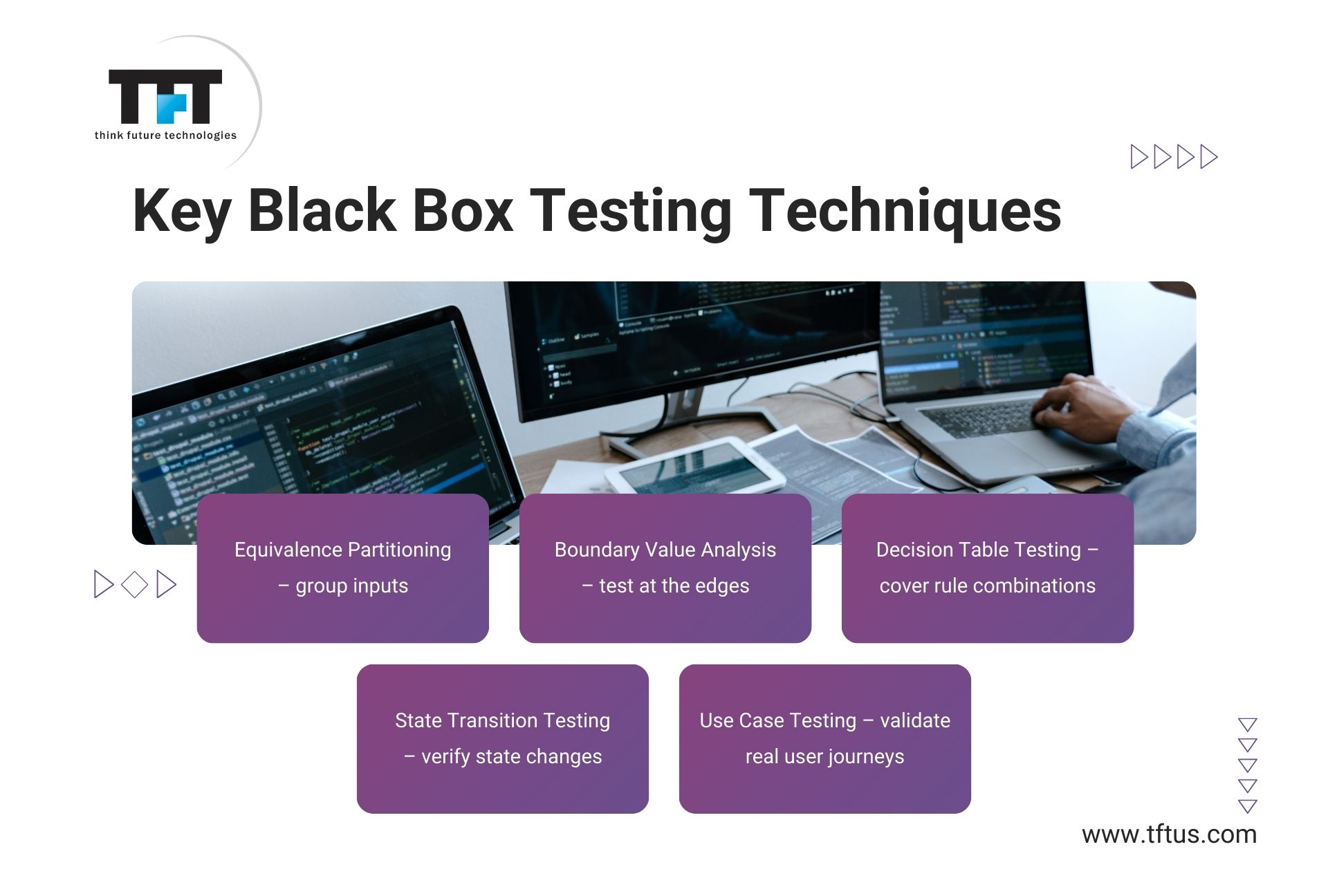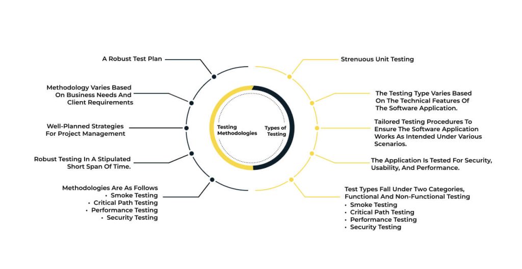 Software testing methodologies are techniques used to ensure software meets requirements and works as expected. They help identify defects early on, reducing costs and improving overall quality . Test-driven development (TDD) involves writing tests before coding, ensuring functionality is met at every step . Behavior-Driven Development (BDD) focuses on defining behavior through scenarios, verifying that software behaves as intended . Agile testing approaches prioritize iterative testing, with frequent releases and feedback from stakeholders . Black box testing evaluates software solely based on input/output, without knowing internal workings . White box testing, also known as clear box testing, examines code-level details to identify defects . Gray box testing combines black and white box techniques for a balanced approach . Equivalence partitioning divides test cases into partitions based on input data, ensuring comprehensive coverage . State transition testing focuses on software's behavior when transitioning between different states . Pairwise testing selects unique combinations of input variables to ensure thorough testing . Scenario-based testing simulates real-world scenarios to validate software functionality . Automated testing uses software tools to execute tests, reducing manual effort and improving efficiency . Exploratory testing involves human testers exercising the software to identify defects and improve understanding .