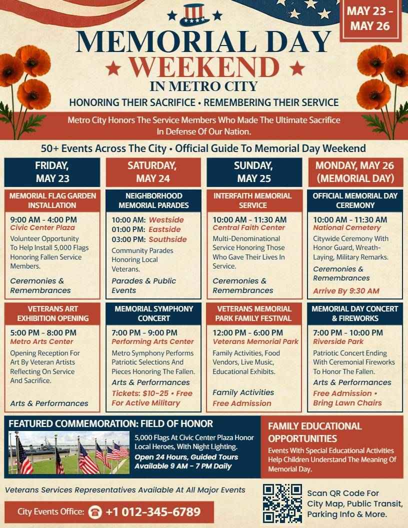 Memorial Day weekend plans are underway for many as they prepare to honor those who have died while serving in the United States Armed Forces Outdoor barbecues and picnics are a popular way to spend Memorial Day weekend, often accompanied by family gatherings and friends Some people choose to take advantage of the long holiday weekend to plan a quick getaway or vacation, whether it's a road trip or a beachside retreat Many Americans also use Memorial Day as an opportunity to pay respects at cemeteries, memorials, or national parks For others, the three-day weekend is a chance to recharge and relax with loved ones before the busy summer season kicks in Memorial Day events and ceremonies are also scheduled throughout the country, honoring those who have made the ultimate sacrifice for their country