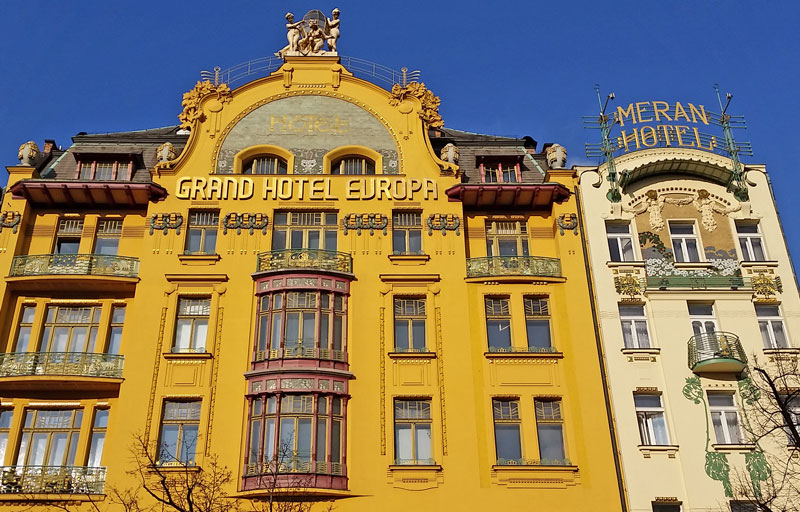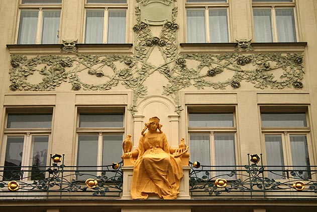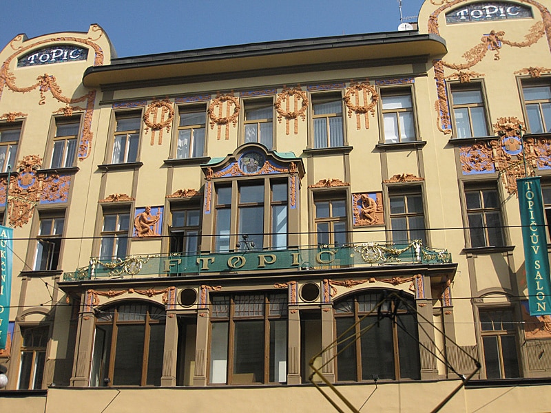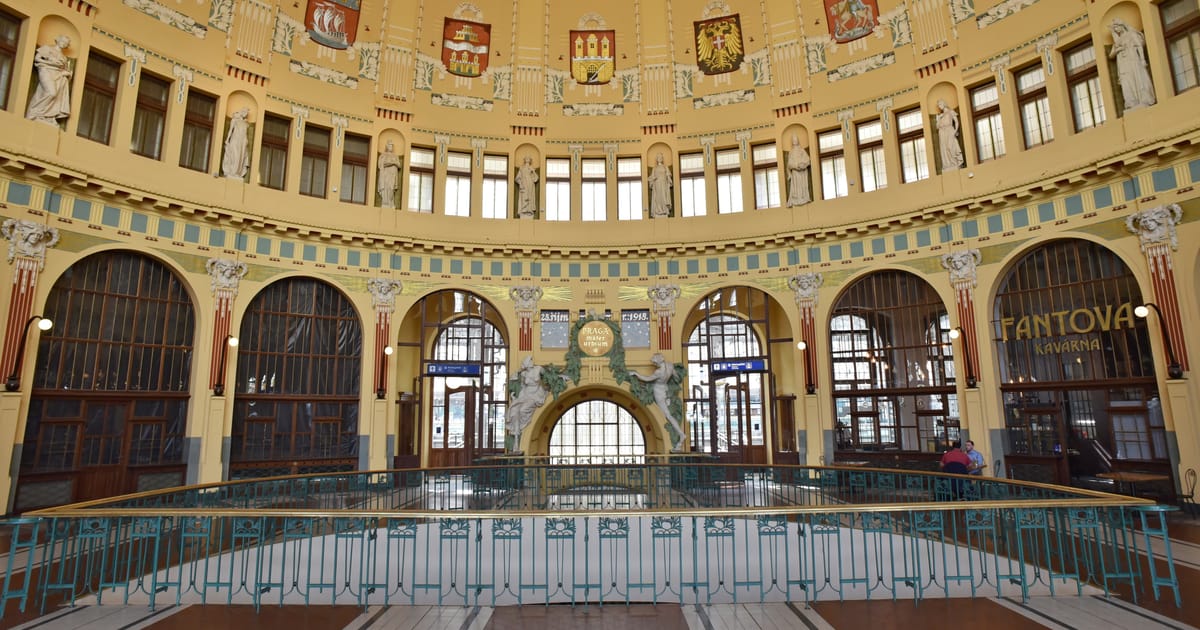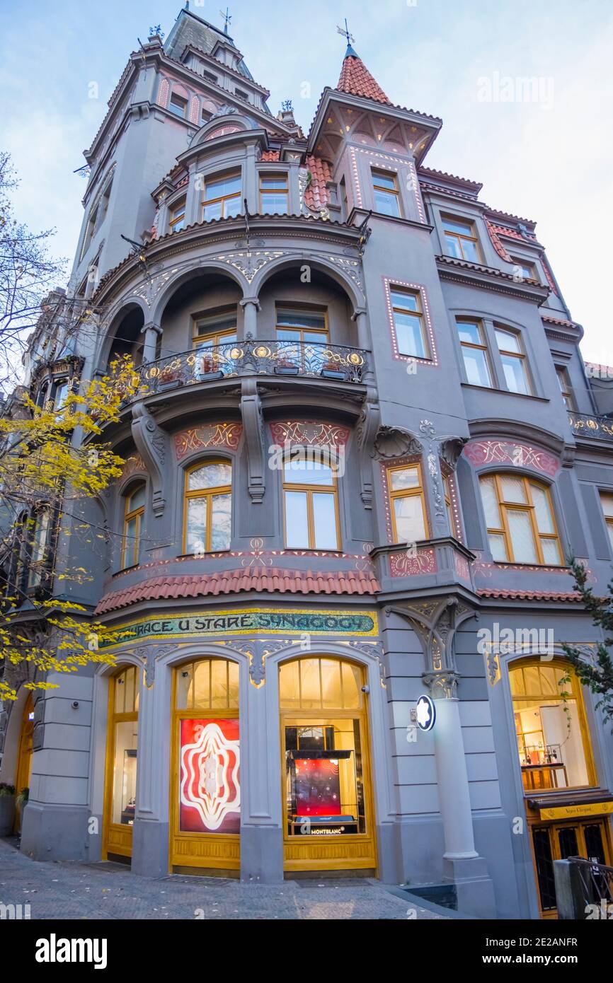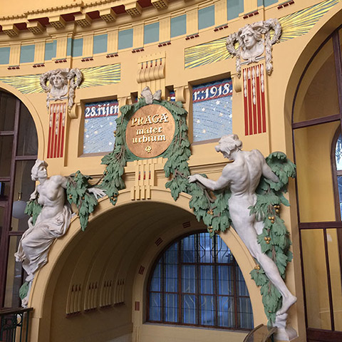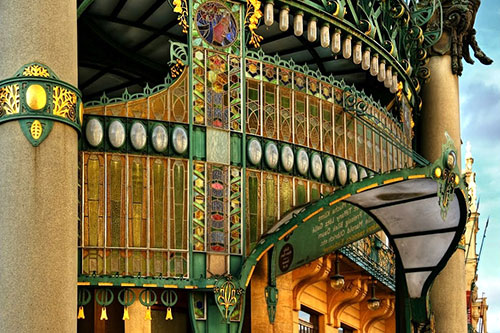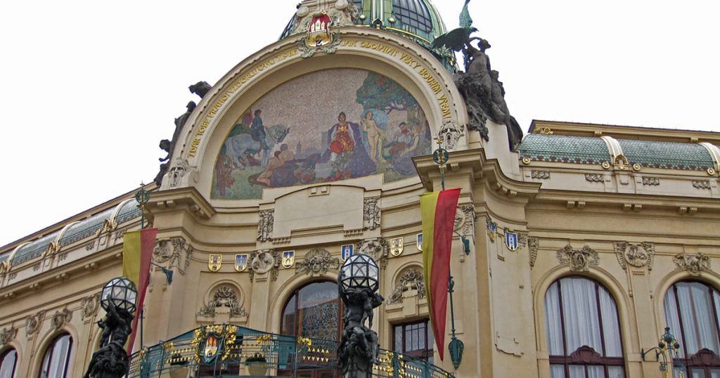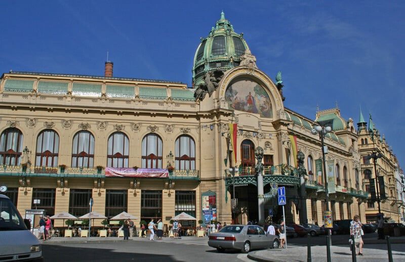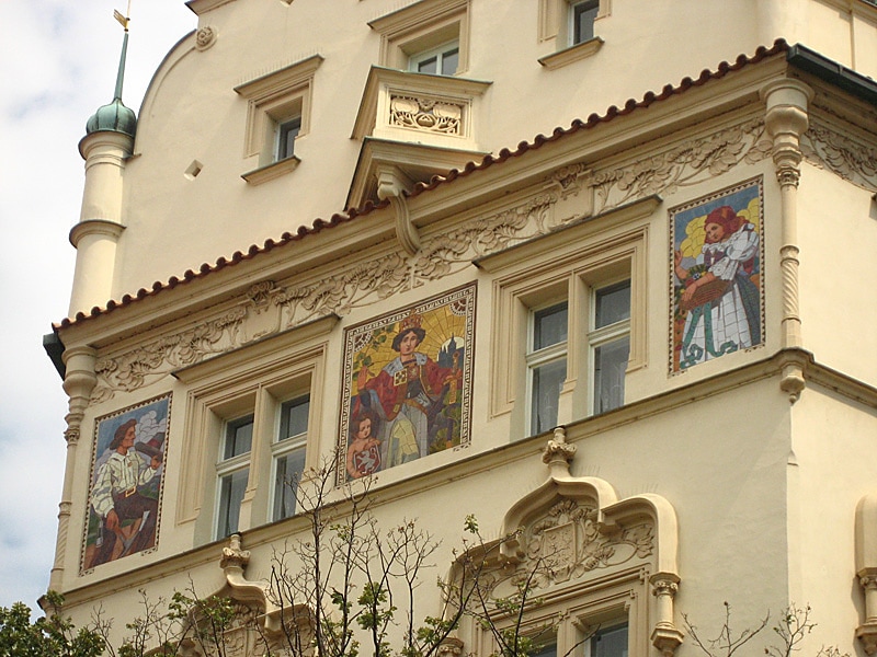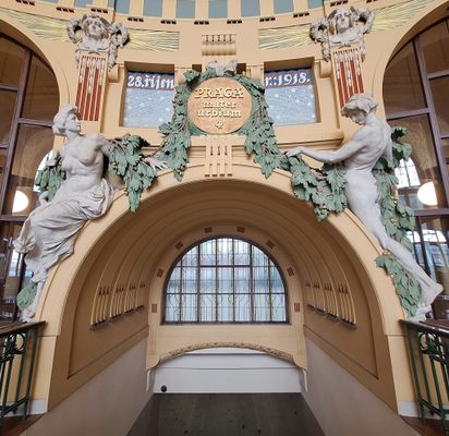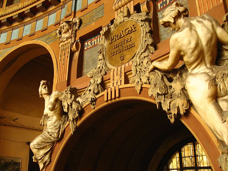 Here is a description of Art Nouveau Prague within the context of Prague: In the late 19th and early 20th centuries, Prague's architectural landscape was transformed by Art Nouveau style, characterized by sinuous lines, organic forms, and flowing curves. The city's Art Nouveau movement was led by architects like AntonΓn BalΕ‘Γ‘nek, who designed iconic buildings like the House of the Black Madonna on Charles Bridge. Art Nouveau influences can be seen in Prague's ornate street lamps, decorative doorways, and intricate tile work that adorns many buildings. The movement was also reflected in Prague's interior design, with Art Nouveau motifs appearing in furniture, ceramics, and glasswork. Today, visitors to Prague can explore the city's preserved Art Nouveau architecture, including the stunning Municipal House, which features a grand staircase and ornate ceiling.
