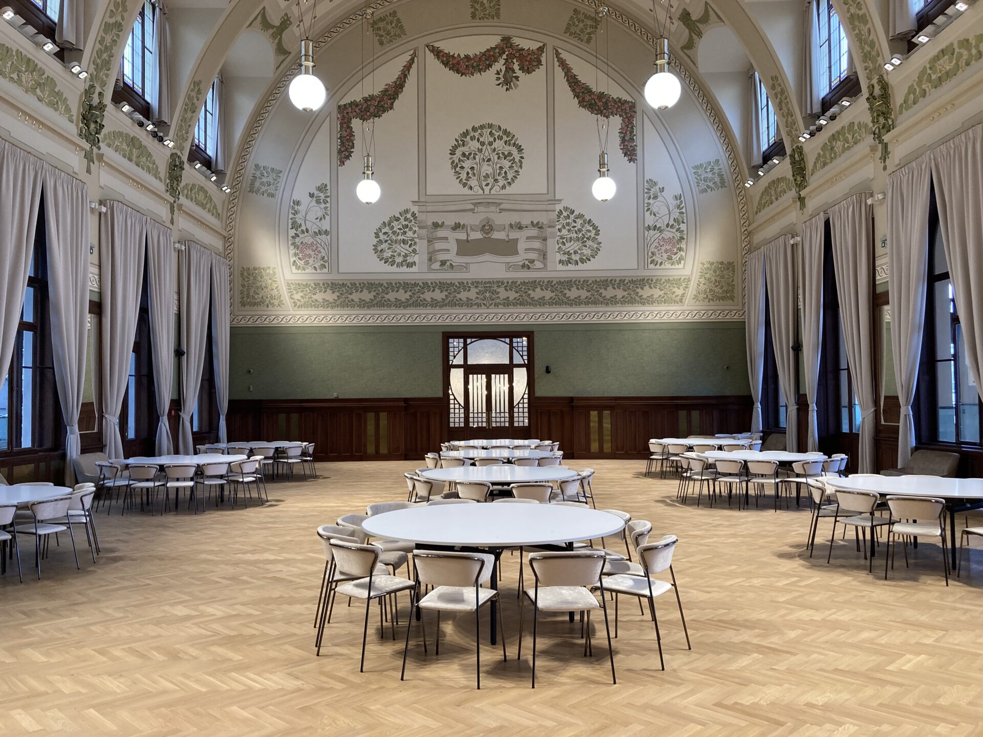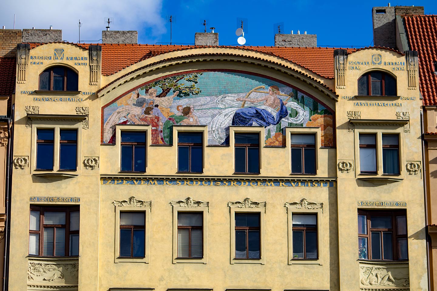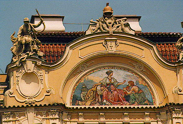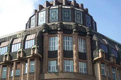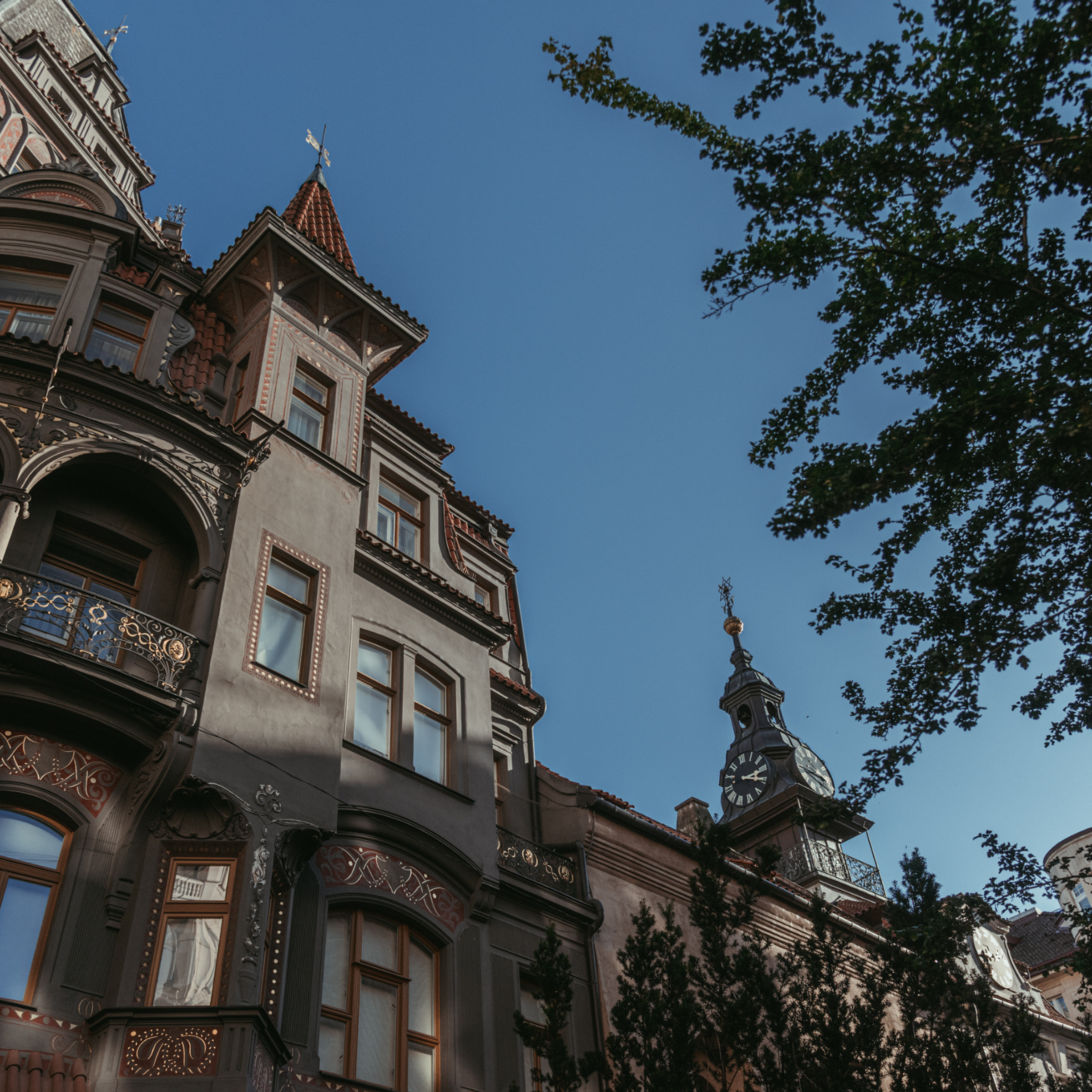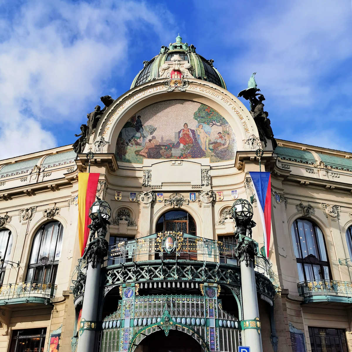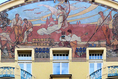 Here is a description of Art Nouveau Prague within the context of Prague: In the late 19th and early 20th centuries, Prague's architectural landscape was transformed by Art Nouveau style, characterized by sinuous lines, organic forms, and flowing curves. The city's Art Nouveau movement was led by architects like AntonΓn BalΕ‘Γ‘nek, who designed iconic buildings like the House of the Black Madonna on Charles Bridge. Art Nouveau influences can be seen in Prague's ornate street lamps, decorative doorways, and intricate tile work that adorns many buildings. The movement was also reflected in Prague's interior design, with Art Nouveau motifs appearing in furniture, ceramics, and glasswork. Today, visitors to Prague can explore the city's preserved Art Nouveau architecture, including the stunning Municipal House, which features a grand staircase and ornate ceiling.