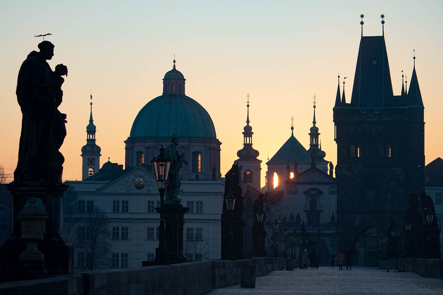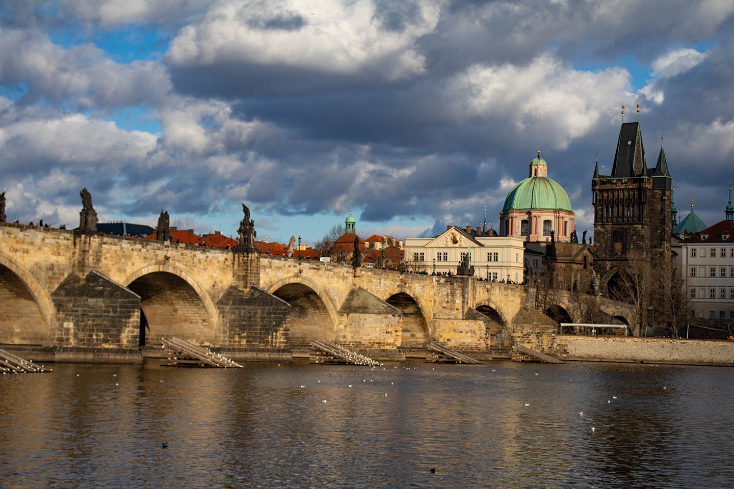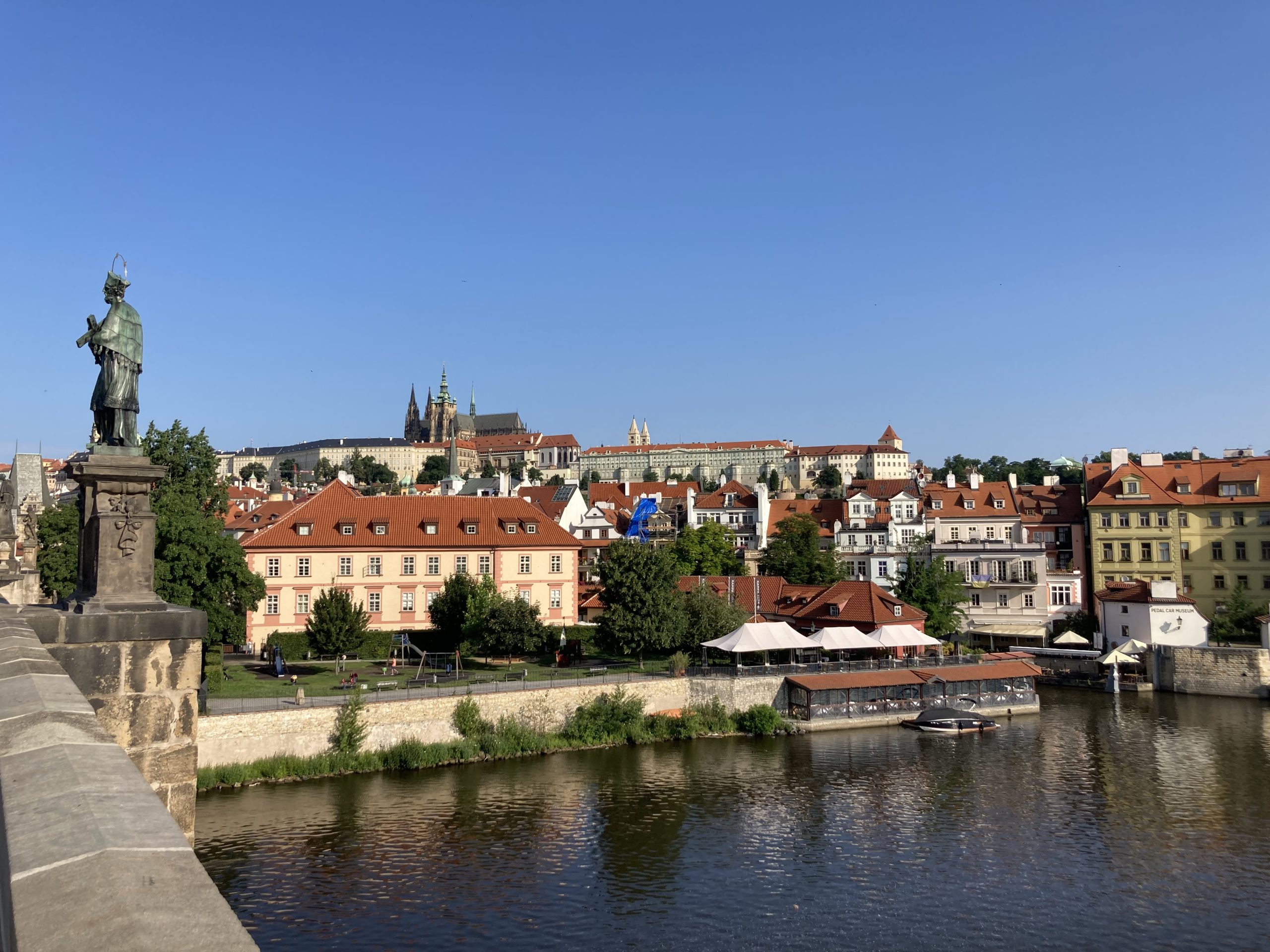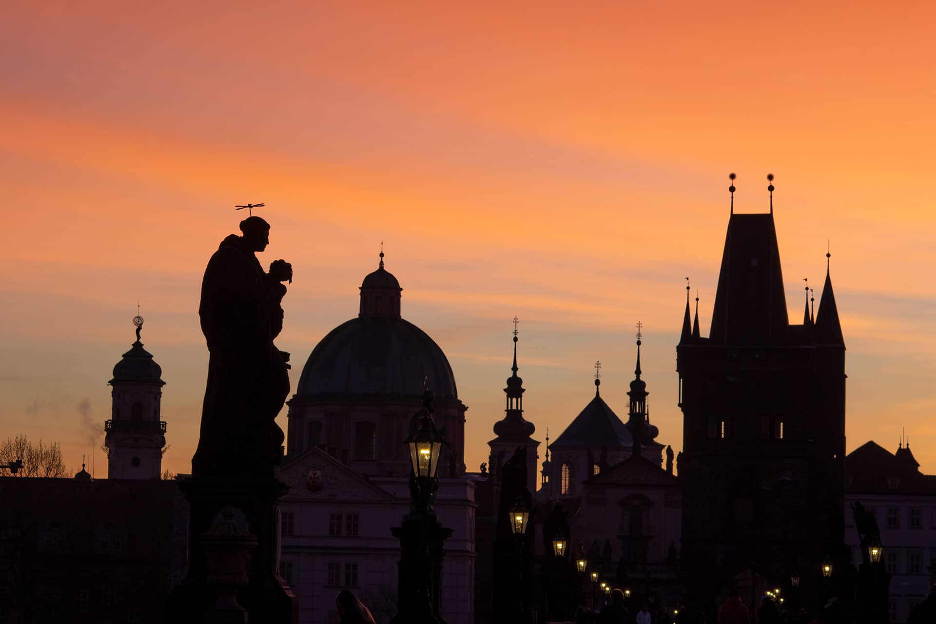 Here is a description of famous landmarks in Prague: The Charles Bridge is a iconic landmark connecting the Old Town to the Lesser Town district, lined with statues and offering stunning views of the Vltava River PetÅ™Ãn Tower is a miniature version of the Eiffel Tower, standing 60 meters tall and offering panoramic views of the city from its observation deck St. Nicholas Church in Prague's Old Town Square is a beautiful Baroque church with intricate stone carvings and ornate decorations The Old Town Hall, also located in Prague's Old Town Square, features a stunning Gothic facade and a famous astronomical clock that dates back to the 15th century The Jewish Quarter, including the Spanish Synagogue and the Pinkas Synagogue, is a significant cultural and historical landmark, showcasing the city's rich Jewish heritage Wenceslas Square is one of Prague's largest public spaces, featuring the National Museum, the statue of St. Wenceslas, and a lively atmosphere with street performers and markets