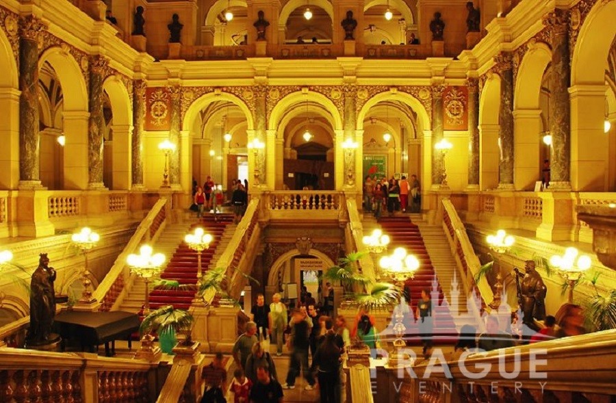 Here is the description: Prague's museums showcase the city's rich history and culture. National Museum's grand building houses exhibits on Czech history and natural sciences . The City of Prague Museum displays artifacts from ancient times to modern era . The Jewish Museum in Prague explores the history of Jewish community . Museums like the Mucha Museum and the Kafka Museum focus on famous Czech artists and writers . The National Technical Museum exhibits inventions and innovations that shaped the country's development .