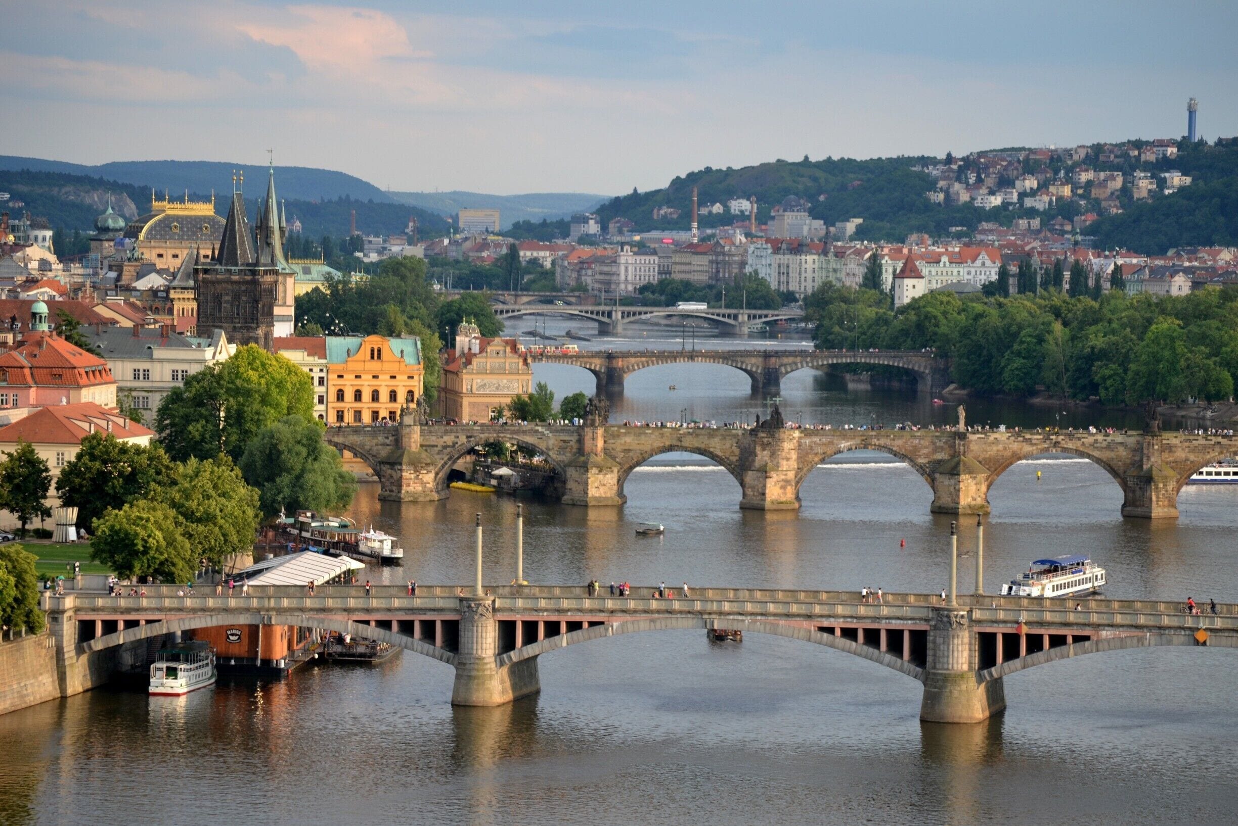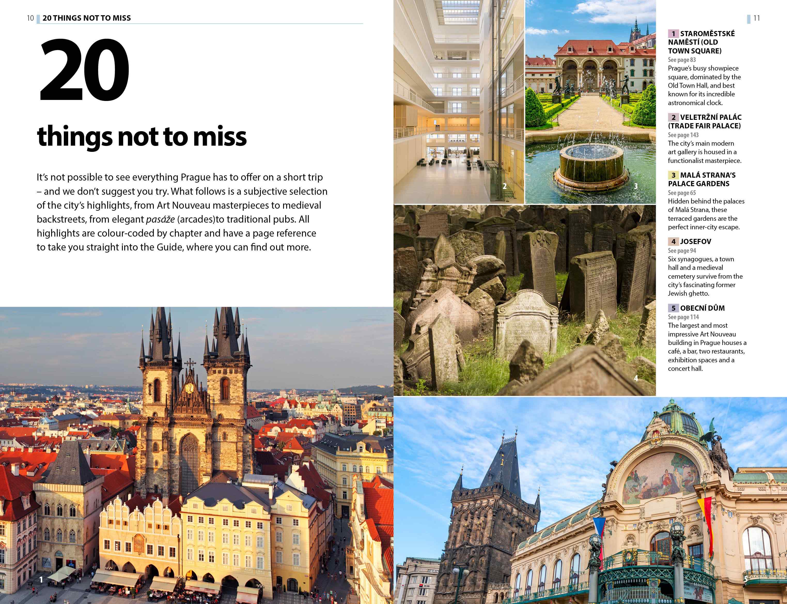 Prague's historic center is a UNESCO World Heritage Site filled with Gothic spires and baroque palaces Wander through the charming streets of Old Town, lined with colorful buildings and lively piazzas Visit iconic landmarks like Charles Bridge, where artists and musicians gather to perform Explore the majestic Prague Castle complex, including St. Vitus Cathedral and the Royal Palace Cross the Vltava River via the picturesque Charles Bridge or take a river cruise for a unique perspective Indulge in traditional Czech cuisine at one of many cozy restaurants and cafes Discover the vibrant art scene in Prague's trendy neighborhoods, like Karlin and SmΓchov Relax in one of the city's many parks and gardens, such as PetΕΓn Hill or the Royal Gardens