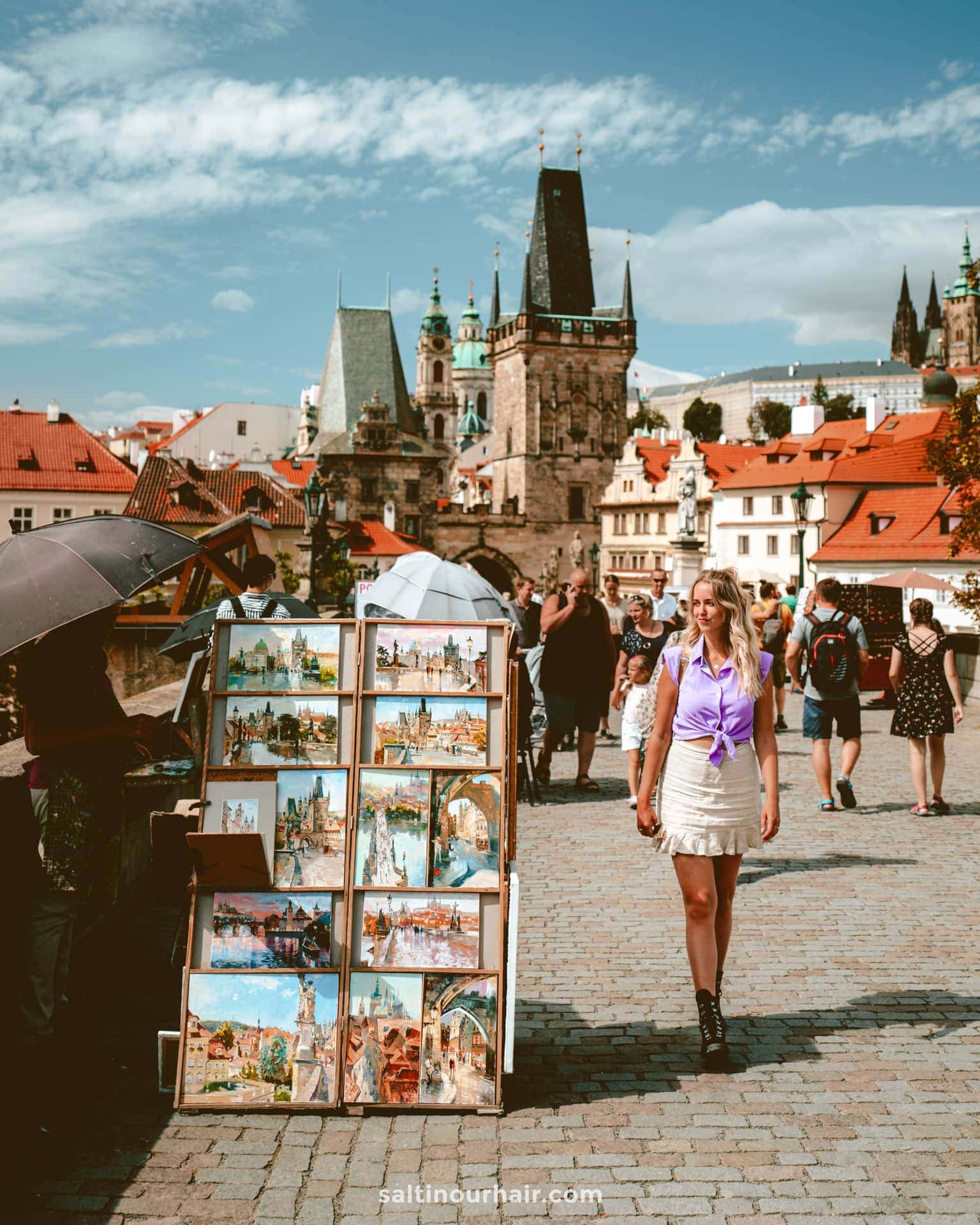 Here is a description of "things_to_do_in_prague" within the context of Prague: Explore the iconic Charles Bridge, lined with statues and offering stunning views of the Vltava River Visit the Prague Castle complex, including St. Vitus Cathedral and the Old Royal Palace Take a stroll through the picturesque PetÅ™Ãn Hill, featuring gardens, viewpoints, and a miniature Eiffel Tower Wander through the charming streets of the Jewish Quarter, home to historic synagogues and the Spanish Synagogue Indulge in traditional Czech cuisine at a local restaurant or food stall, such as goulash or roasted pork Relax in the tranquil atmosphere of the Wallenstein Garden, featuring fountains, statues, and beautiful architecture Shop for unique souvenirs and handmade crafts at the lively markets, like the Old Town Square or Wenceslas Square