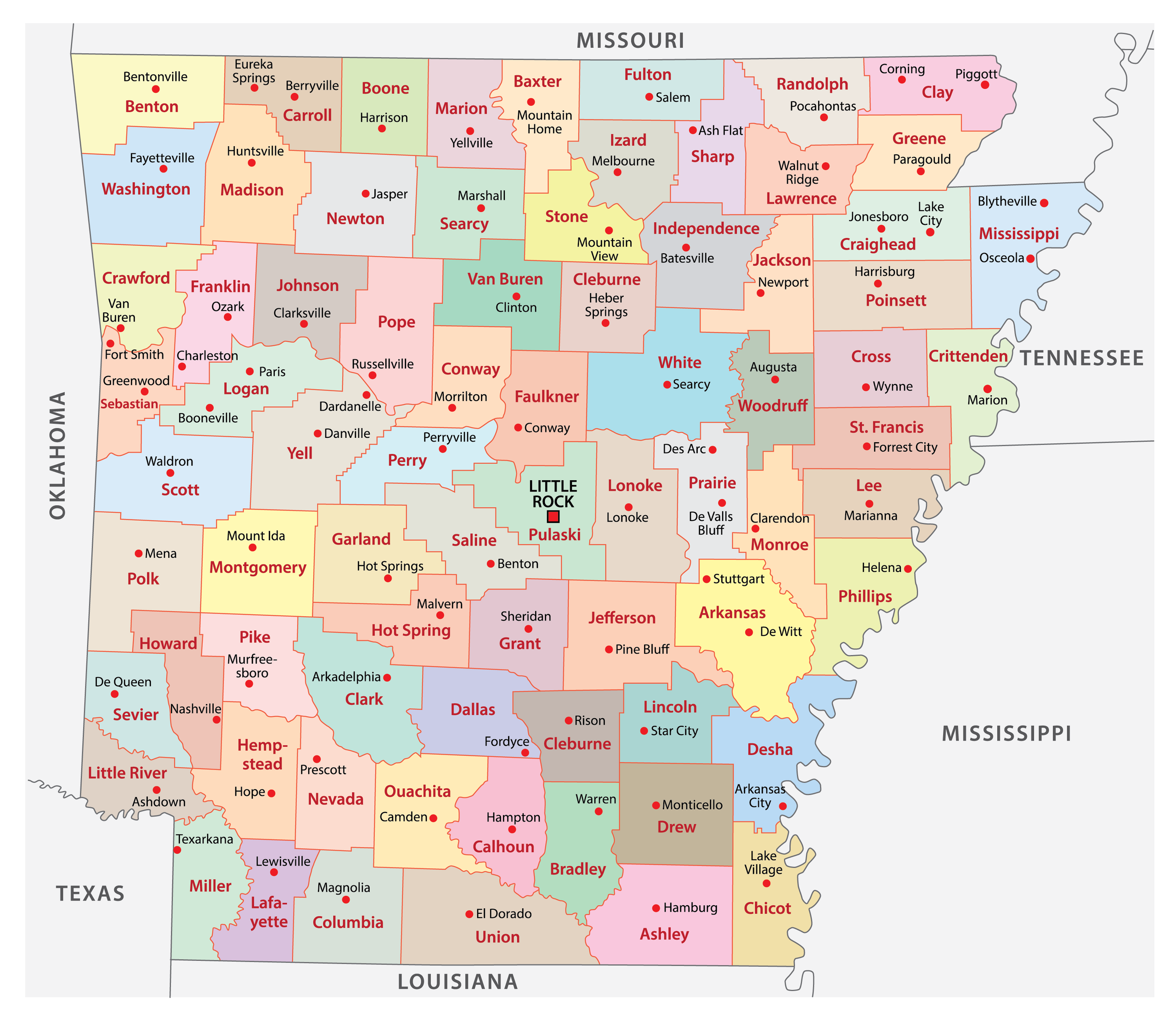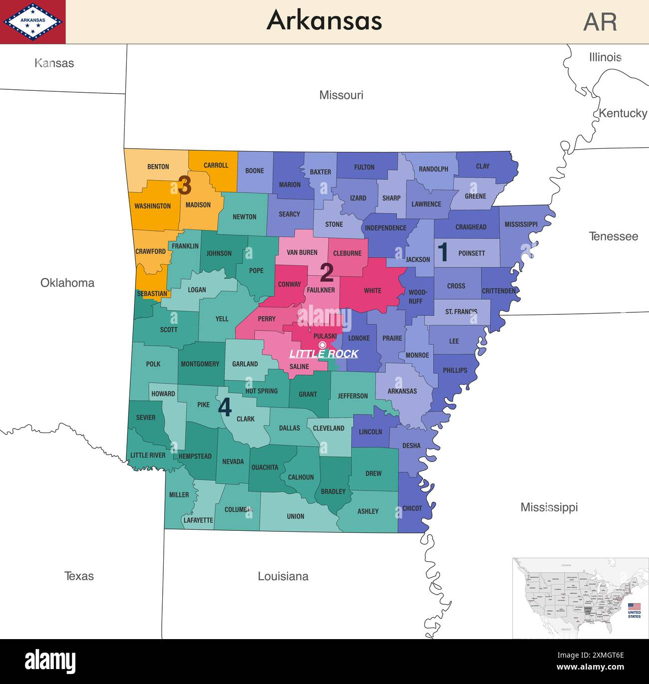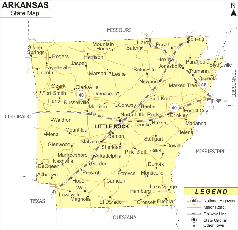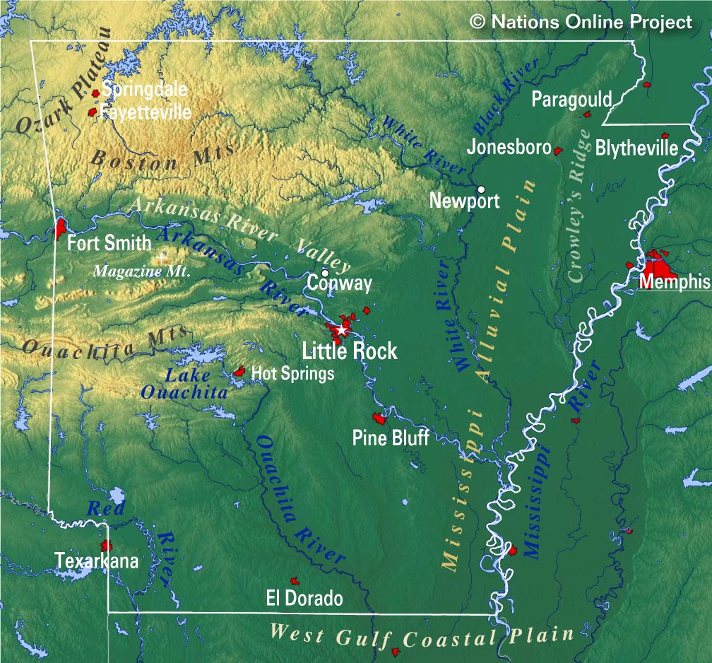 Arkansas is a state located in the southern United States, bordering Texas, Louisiana, Mississippi, Tennessee, and Oklahoma. It is part of the South-Central region The state capital is Little Rock, and its largest city is also called Little Rock, with a population of over 198,000 people Arkansas is known for its natural beauty, including the Ozark Mountains, hot springs, and forests The state has a diverse economy, with major industries in agriculture, mining, and manufacturing, as well as tourism and healthcare Arkansas is also home to several universities, including the University of Arkansas and Arkansas State University