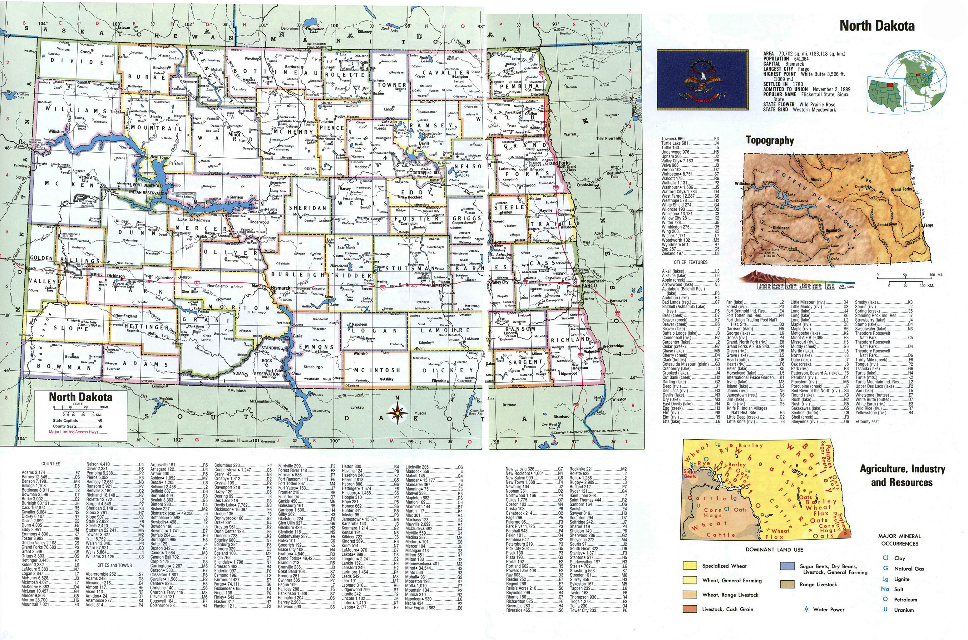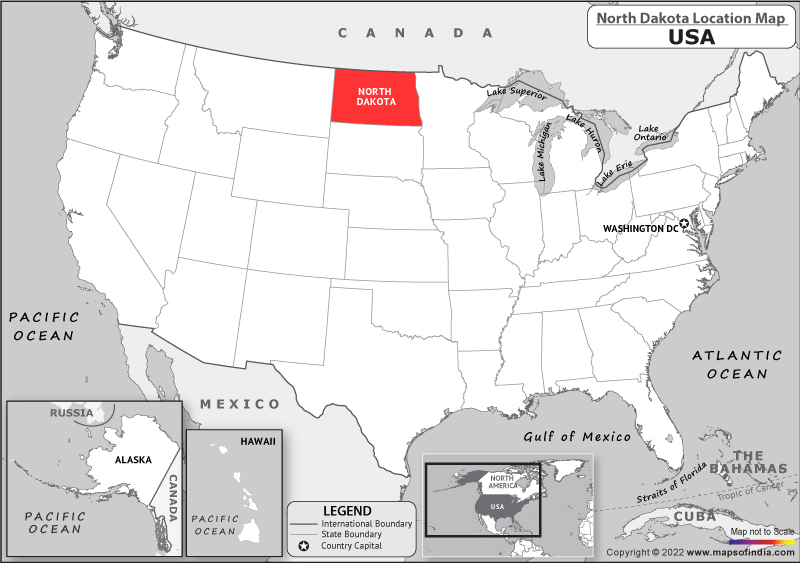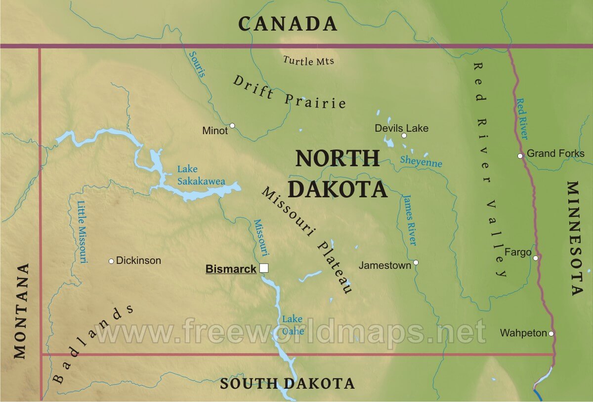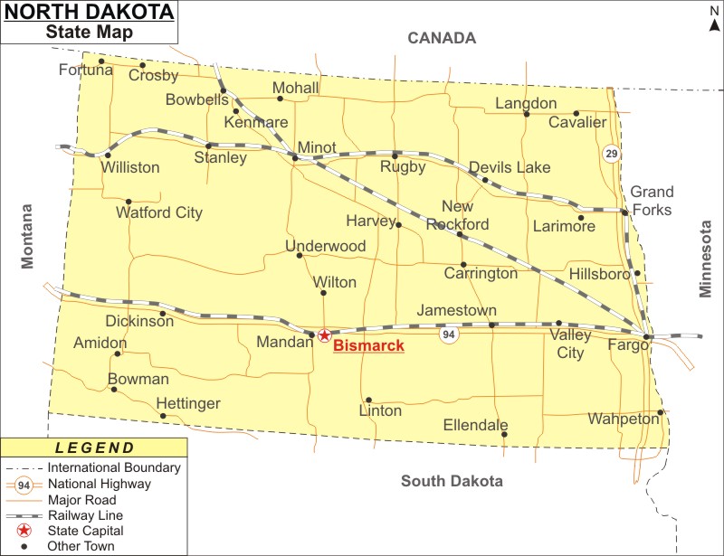 North Dakota is a state located in the Midwestern region of the United States. Its capital city is Bismarck The state shares its border with Canada to the north, Montana to the west, South Dakota to the south, and Minnesota to the east North Dakota is known for its rugged terrain, including badlands and prairies, as well as its many lakes and wetlands The state has a strong agricultural industry, particularly in wheat, corn, and sunflowers Fargo is the largest city in North Dakota, followed closely by Bismarck