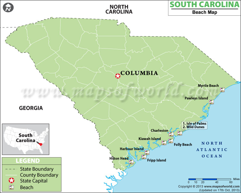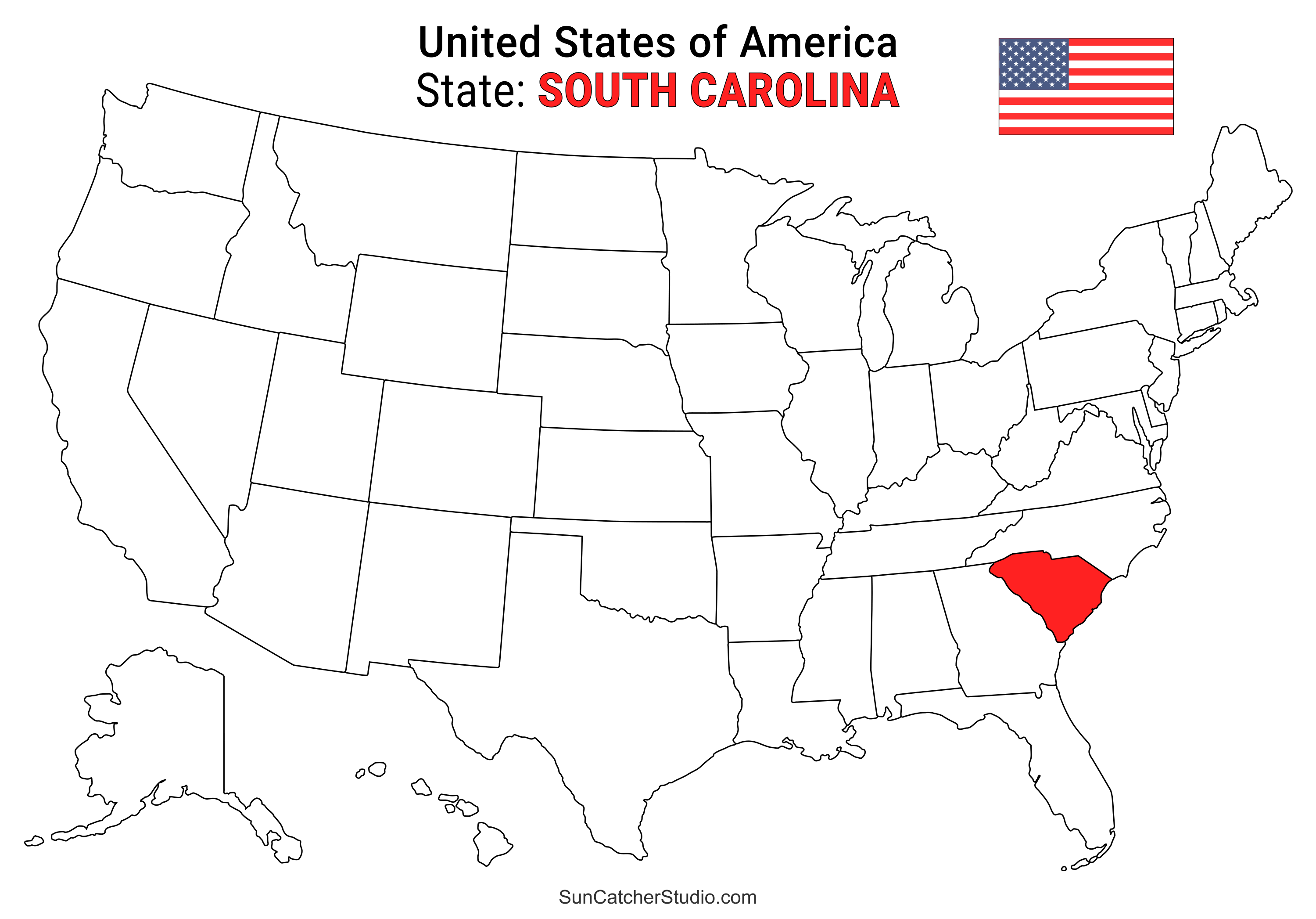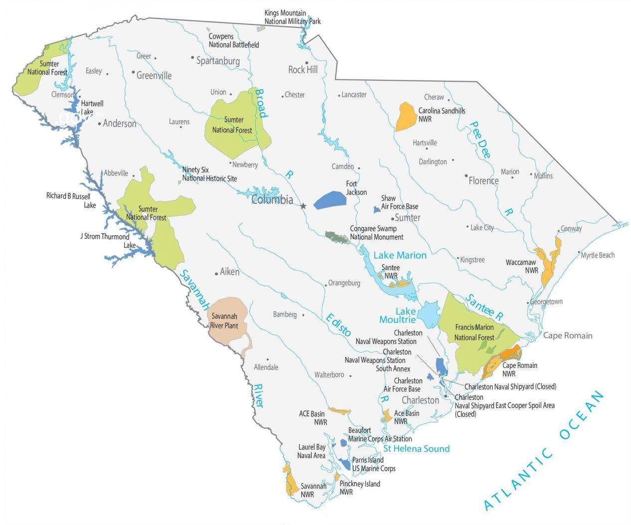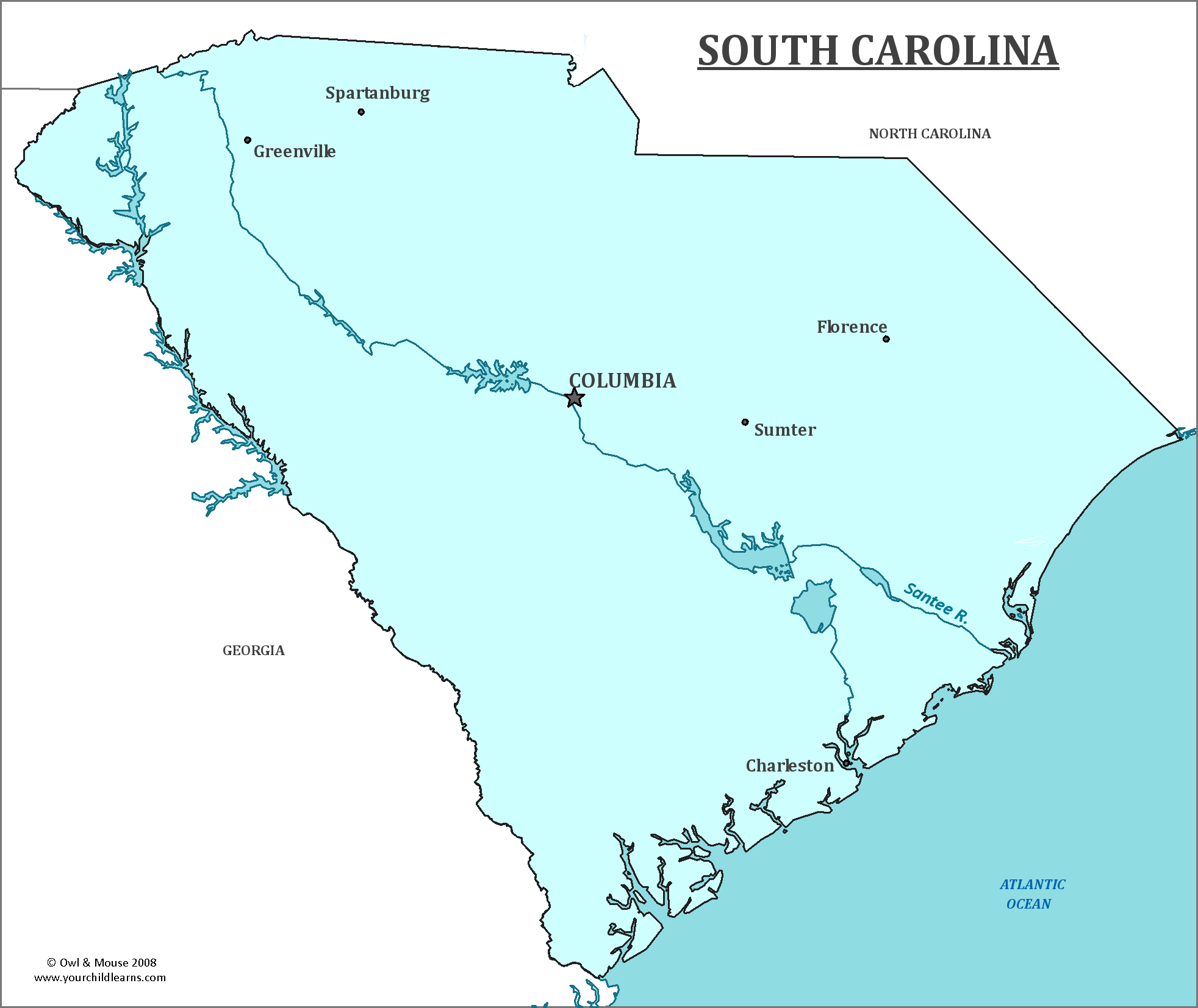 South Carolina is a state located in the southeastern United States. It borders North Carolina to the north, Georgia to the west, and the Atlantic Ocean to the east. The capital city of South Carolina is Columbia, which is situated about 100 miles inland from Charleston, a major port city. South Carolina is known for its rich history, including being one of the original thirteen colonies and playing a significant role in the American Civil War. The state's economy is driven by industries such as manufacturing, healthcare, and tourism, with tourism being a major contributor to the state's revenue. South Carolina is home to several well-known universities, including Clemson University and the University of South Carolina, both of which have strong athletic programs.